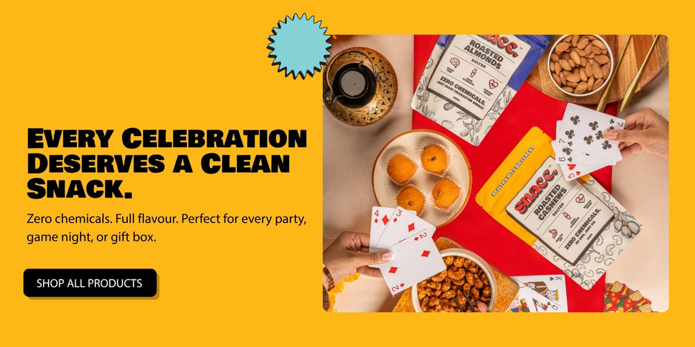 At SNACC, "clean label" means complete transparency and no hidden nasties. Our snacks are free from preservatives, artificial additives, flavour enhancers, maltodextrin, citric/malic acids, anti-caking agents, and other synthetic chemicals. You get only what your body understands—real, wholesome ingredients.