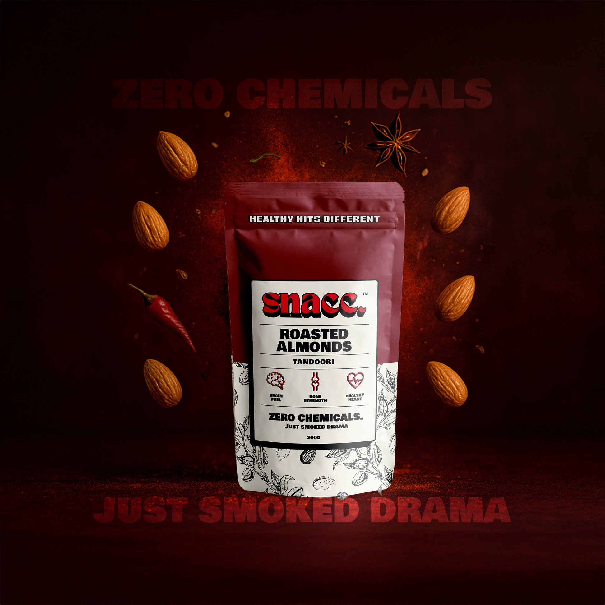 Smoky, tangy, bold — roasted almonds with tandoori spices, packed with flavour and health.