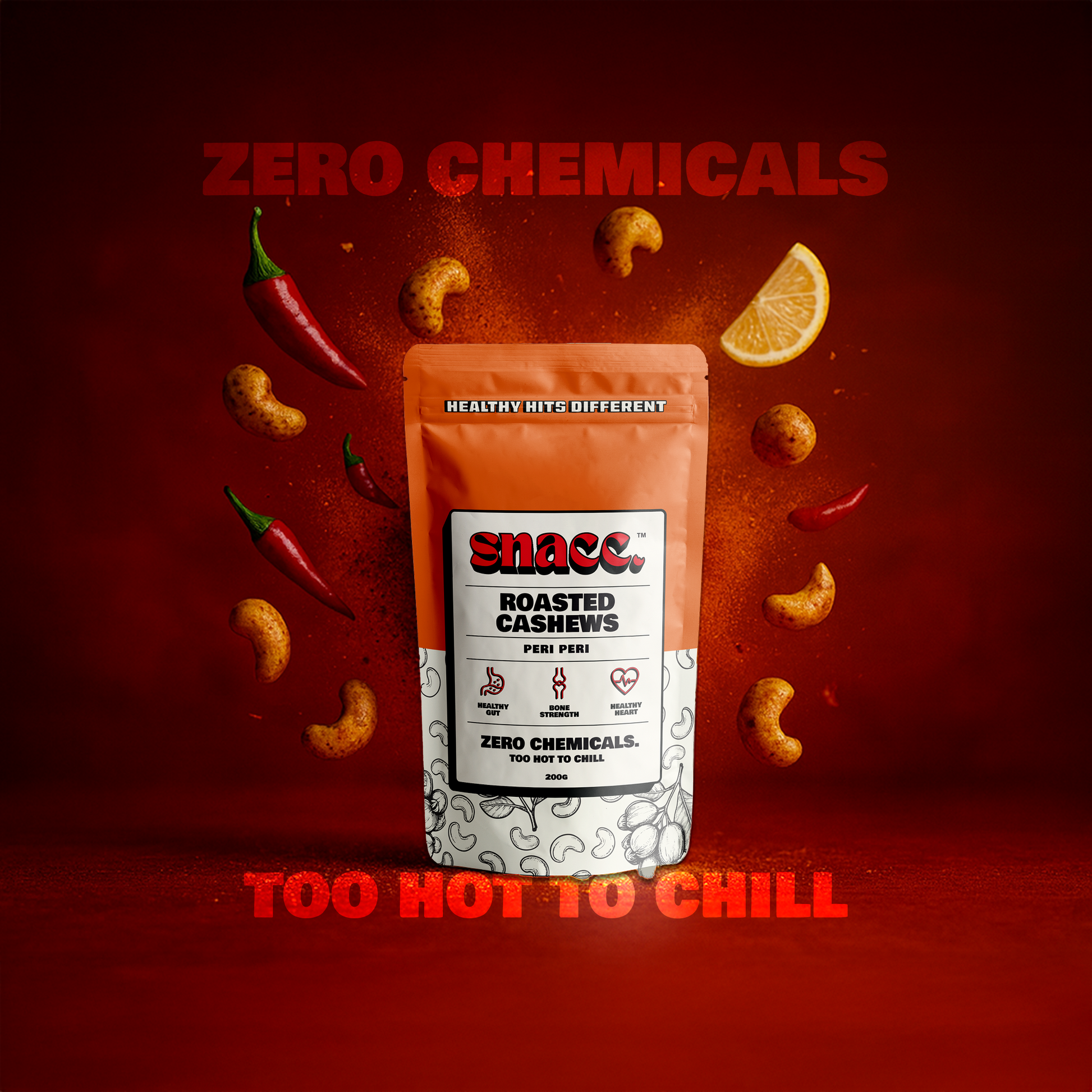 Rich, crunchy cashews roasted and coated in peri peri spices for a fiery, flavour-packed snack.